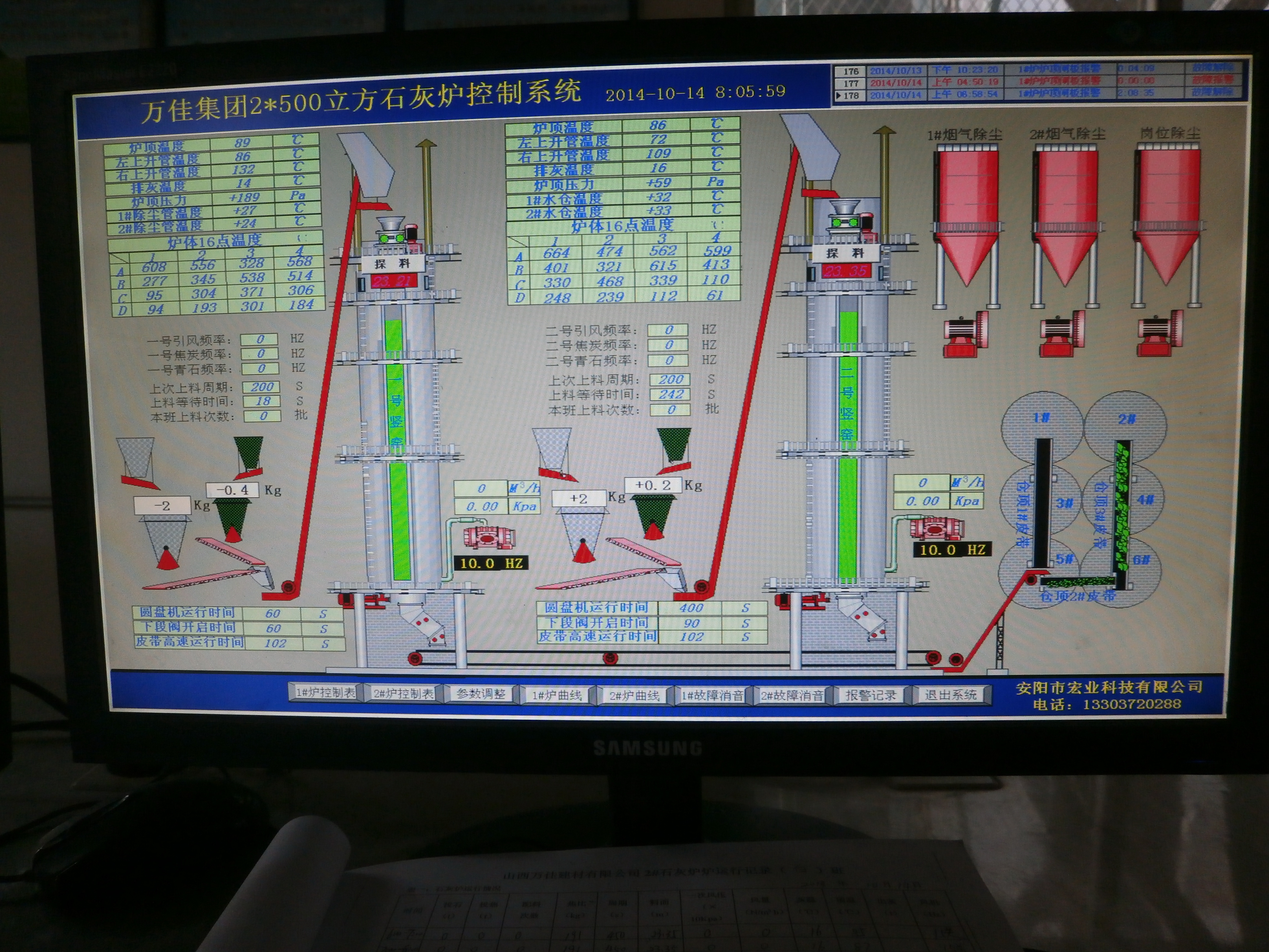 通過(guò)程序控制石灰窯設(shè)備(混配系統(tǒng)、卷?yè)P(yáng)機(jī)、旋轉(zhuǎn)布料器、兩段密封閥、出灰機(jī)等設(shè)備)完成原燃料自動(dòng)稱量與均勻混配、豎爐煅燒、成品自動(dòng)出灰等生產(chǎn)過(guò)程的全自動(dòng)控制,故障自動(dòng)檢測(cè)并實(shí)現(xiàn)中文語(yǔ)音報(bào)警。